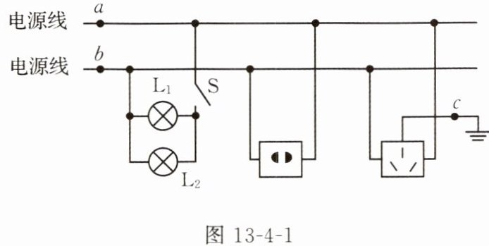 2. 某家庭电路的连接情况如图 13 - 4 - 1 所示,下列说法正确的是(