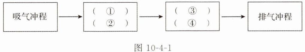 2. 如图 10-4-1 所示的流程图是用来说明单缸四冲程汽油机的一个工作循环及涉及的主要能量转化情况的,下列对图中①②③④的补充正确的是(