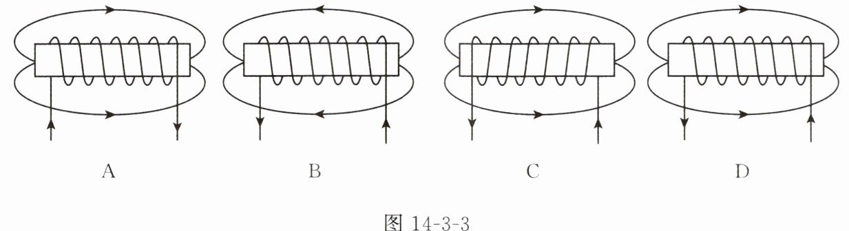 4. 关于通电螺线管周围的磁感线,图 14 - 3 - 3 中正确的是(