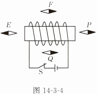 5. 如图 14 - 3 - 4 所示,通电螺线管周围有四个小磁针 E、F、P、Q(图中涂黑端为小磁针的 N 极),当小磁针静止时 N 极所指方向正确的是(