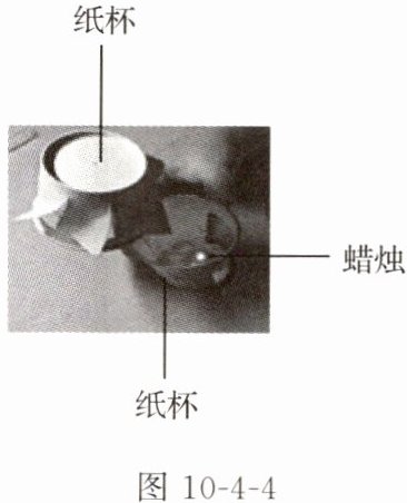 6. 小倩参加元宵节“赏花灯”活动,对“走马灯”产生了浓厚的兴趣,于是她利用身边的物品制作了简易的“走马灯”,如图 10-4-4 所示,点燃下方纸杯中的蜡烛后,其内部的气体温度升高,上升并推动上方纸杯转动,这一过程是将高温气体的内能转化为纸杯的
