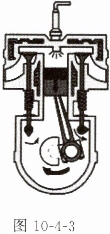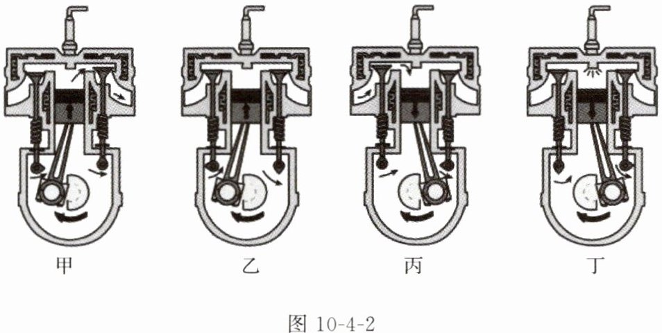 冲程的能量转化情况类似。图 10-4-3 是四冲程汽油机的一个冲程,在该冲程进行时,气缸内气体的内能减小