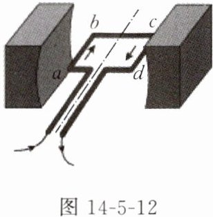 9. (1)如图 14 - 5 - 12 所示,磁体间磁场的磁感线方向都是从磁体 N 极水平指向 S 极,且线圈所处的空间磁场强弱是恒定的。通电后,若 cd 段导线受到的力的方向为竖直向下,则 ab 段导线受到的力的方向为