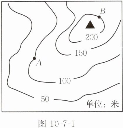 1. (2024·山东青岛中考)图 10 - 7 - 1 是小明家附近公园的等高线图。周末,小明爬山锻炼身体,他的质量为 60 kg,g 取 10 N/kg。在他匀速下山的过程中,下列判断正确的是(