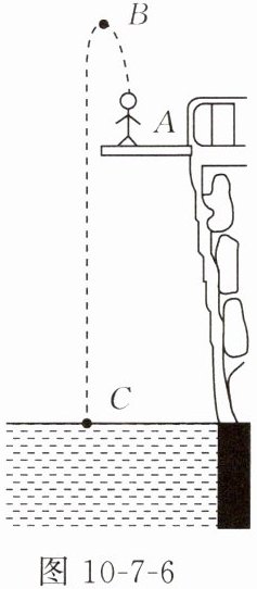 9. (山东日照中考)(多选)如图 10 - 7 - 6 所示,某次跳水比赛中,运动员站立在跳台上的 A 点,然后保持直立姿势从跳台上竖直向上弹跳后腾空,至最高点 B 处后自由下落,至 C 点落入水中。关于上述运动过程中运动员腾空后的机械能(不计空气阻力),下列分析正确的是(