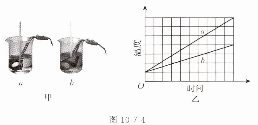 7. (2024·湖北中考)如图 10 - 7 - 4 甲所示,利用相同规格的加热器加热等质量的 a、b 两种液体,得到的温度—时间图像如图 10 - 7 - 4 乙所示,分析可知(