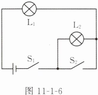 4. 如图 11 - 1 - 6 所示的电路中,同时闭合开关 S₁、S₂,则(