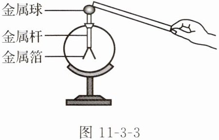 5. 如图 11-3-3 所示,用丝绸摩擦过的玻璃棒接触不带电的验电器金属球时,验电器的金属箔张开。下列关于该现象的说法正确的是(