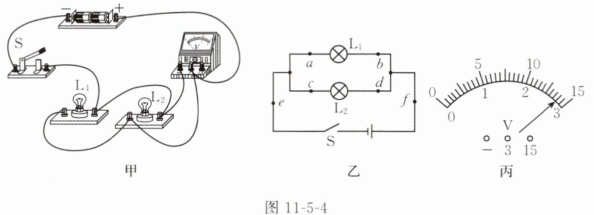 。(2)排除故障后,将图 11 - 5 - 4 甲中的实物电路转化成如图 11 - 5 - 4 乙所示的电路图,用电压表接在 a 和 b 两点之间时,闭合开关,电压表的示数如图 11 - 5 - 4 丙所示,为