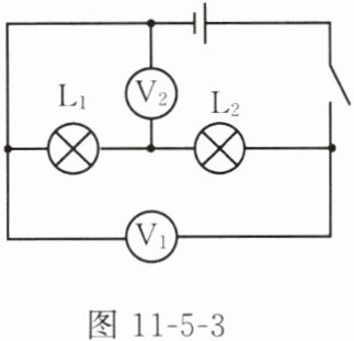 5. 如图 11 - 5 - 3 所示的电路中,闭合开关,电压表 V₁ 的示数为 6.0 V,电压表 V₂ 的示数为 3.6 V。下列说法不正确的是(
