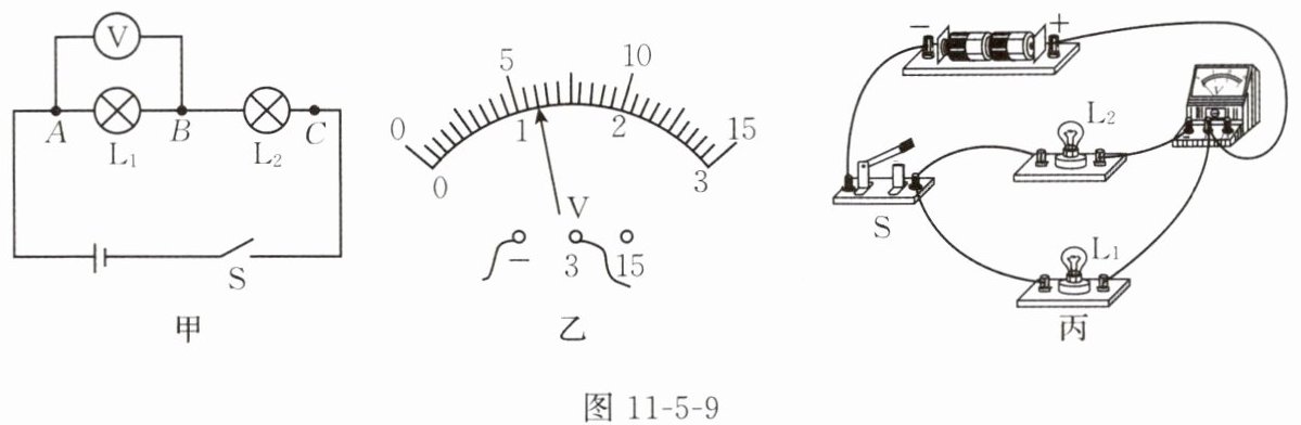 (4)某次测量 L₁ 两端的电压时,电压表的示数如图 11 - 5 - 9 乙所示,则此时 L₁ 两端的电压是