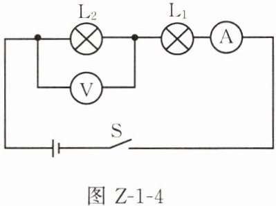 4. 如图 Z-1-4 所示,闭合开关 $ S $ 后,$ L_1 $、$ L_2 $ 都能发光。过了一会儿,$ L_1 $、$ L_2 $ 同时熄灭,且电流表和电压表的示数均变为零。如果 $ L_1 $、$ L_2 $ 中只有一处发生故障,则故障可能是(