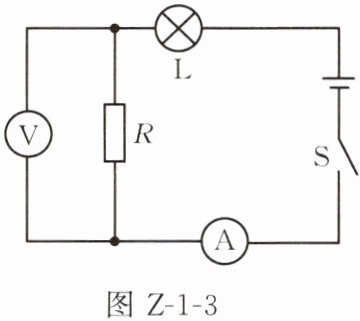 3. 如图 Z-1-3 所示,闭合开关 $ S $,小灯泡 $ L $ 亮,电流表、电压表有示数,工作一会儿后发现小灯泡 $ L $ 不亮,两电表中一个示数增大、一个示数减小,则电路故障可能是(