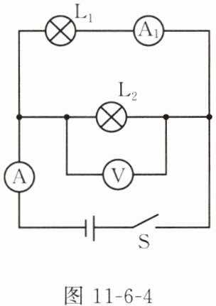 5. (四川达州中考)如图 11 - 6 - 4 所示,电源电压为 3 V。闭合开关 S 后,电流表 A 的示数为 0.54 A,电流表 A₁ 的示数为 0.20 A,则通过小灯泡 L₁ 的电流为