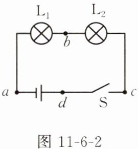 3. (湖北鄂州中考)如图 11 - 6 - 2 所示,开关 S 闭合时,小灯泡 L₁、L₂ 都不亮,用一段导线的两端分别接触 a、b 两点时,两小灯泡都不亮;分别接触 b、c 两点时,两小灯泡都不亮;分别接触 c、d 两点时,两小灯泡都亮。下列判断可能正确的是(