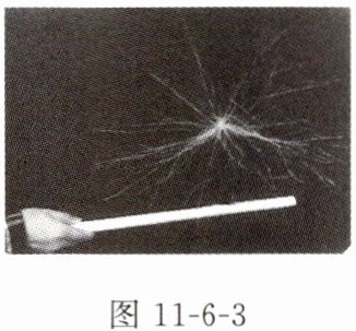4. (四川凉山中考)小旭将塑料袋剪成细丝,用两块毛皮分别来回摩擦细丝和塑料管后,将细丝抛向空中,在其下方用塑料管靠近,细丝可以悬浮在空中飞舞,如图 11 - 6 - 3 所示。下列说法不正确的是(