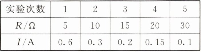 (4)小明实验时控制电压表的示数U=3V一定,通过移动滑动变阻器的滑动头P和改变电阻箱R接入电路的阻值,进行了5次实验,测得了如下表所示的数据。通过分析实验数据可以得出:电压一定时,通过导体的电流与
