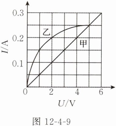 1. (多选)图12-4-9是电阻甲和乙的$I-U$图像,下列判断正确的是(