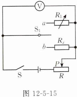 (3)小刚的设计方案如图12-5-15所示,闭合开关S,先将开关$S_1$拨至触点