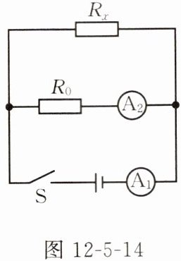 (2)小林的设计方案如图12-5-14所示,闭合开关S,电流表$A_1$和$A_2$的示数分别为$I_1$和$I_2$,已知定值电阻的阻值为$R_0$,则未知电阻$R_x =$