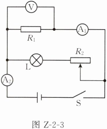 2. 如图 Z - 2 - 2 所示,电源电压保持不变,R 为定值电阻,当开关 S 闭合时,电路正常工作。当滑动变阻器的滑动头向左移动时,下列说法正确的是(