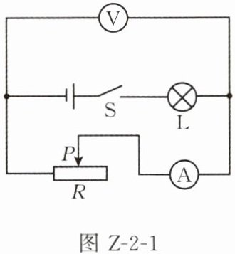 1. 如图 Z - 2 - 1 所示,电源电压和灯泡的电阻不变,闭合开关 S,将滑动变阻器的滑动头 P 向右移动时(