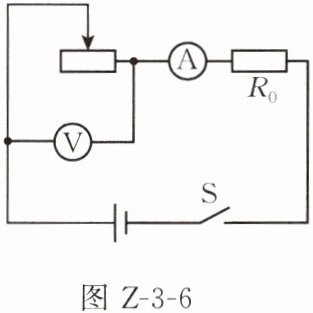 6. 小明连接了如图 Z-3-6 所示的电路做电学实验,电路中电流表的量程为 $ 0 \sim 0.6 A $,电压表的量程为 $ 0 \sim 3 V $,滑动变阻器的铭牌上标有“$ 50 \Omega \ 0.5 A $”的字样,定值电阻 $ R_0 $ 的阻值为 $ 10 \Omega $,电源电压为 $ 6 V $ 且保持不变。实验时操作正确并保证电路各元件安全,则在闭合开关后(