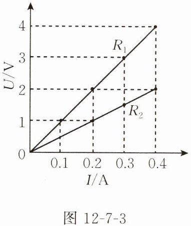 5. (黑龙江哈尔滨中考)图 12 - 7 - 3 是电阻 $ R_1 $、$ R_2 $ 的 U - I 图像,下列说法正确的是(