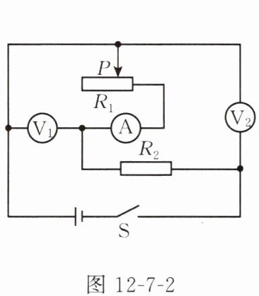 4. (江西中考)如图 12 - 7 - 2 所示,电源电压恒定不变,闭合开关 S,将滑动变阻器 $ R_1 $ 的滑动头 P 向右移动,下列说法正确的是(
