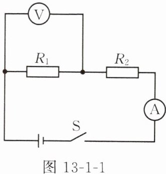 4. 如图 13 - 1 - 1 所示,电源电压保持不变,定值电阻 $ R_{2} $ 的阻值为 $ 4 \Omega $。闭合开关 S,电压表的示数为 $ 4.0 V $,电流表的示数为 $ 0.5 A $,则定值电阻 $ R_{1} $ 的阻值为