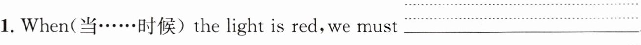 1. When(当……时候) the light is red, we must