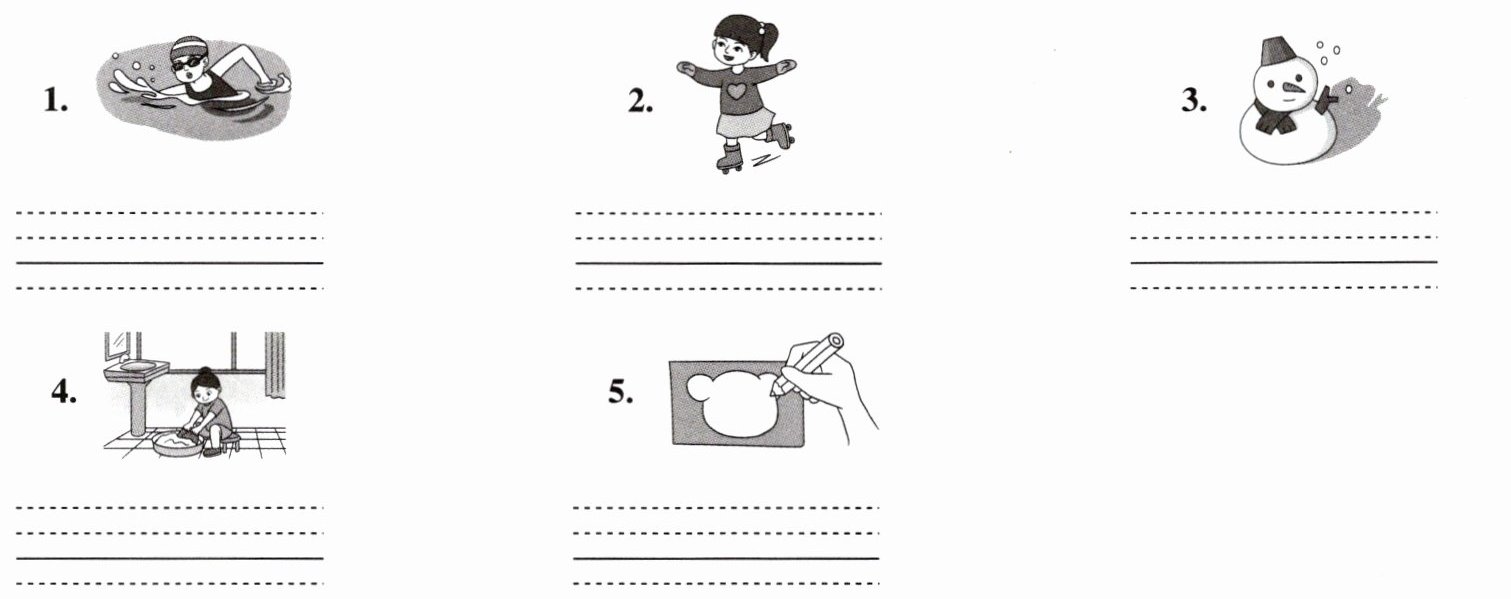 1. go swimming 2. go ice-skating 3. make a snowman 4. wash clothes 5. draw pictures