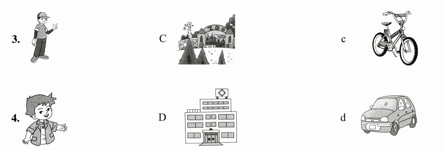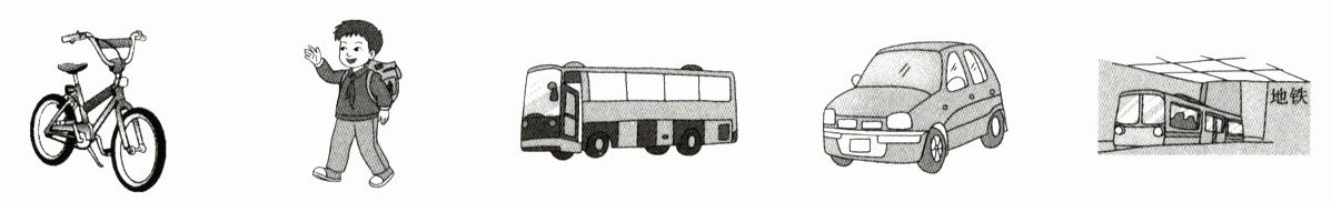 二、听录音,把小朋友的出行方式和目的地连起来。读两遍。(10分)