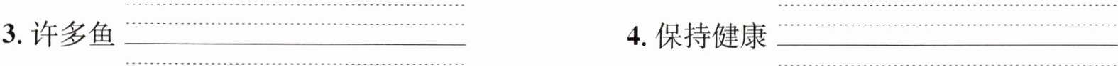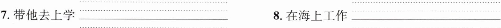 1. 看起来像 2. 又瘦又矮 3. lots of fish/a lot of fish 4. keep/stay healthy 5. 努力工作 6. 去上班 7. take him to school 8. work at sea