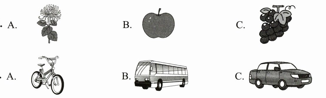 三、听录音,选择恰当的图片。读两遍。(5 分)