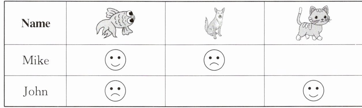 1. No,I don't. 解析:表格中是哭脸图,因此,问题应用否定回答。Do you...? 的肯定回答为:Yes,I do. 否定回答为:No,I don't. 2. Yes,I do. 解析:看表格中 John 的信息,对应的是笑脸,因此应用肯定回答。