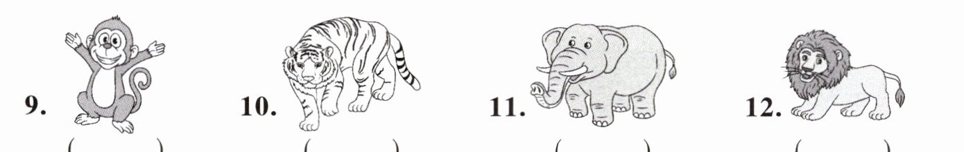 |H. elephant|I. fish|J. cat|K. fox|L. rabbit| | |