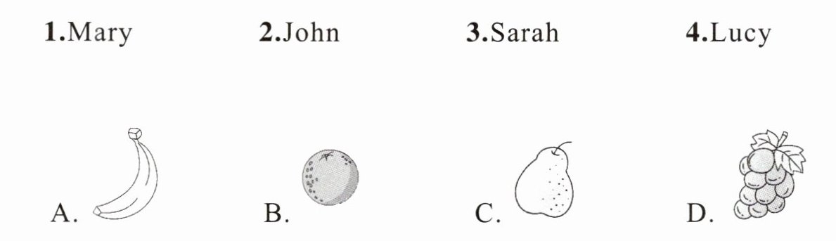 3. C 解析:由短文“Sarah likes it.”可知,Sarah喜欢鼻子。图中的鼻子是梨。