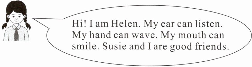 Hi! I am Helen. My ear can listen. My hand can wave. My mouth can smile. Susie and I are good friends.