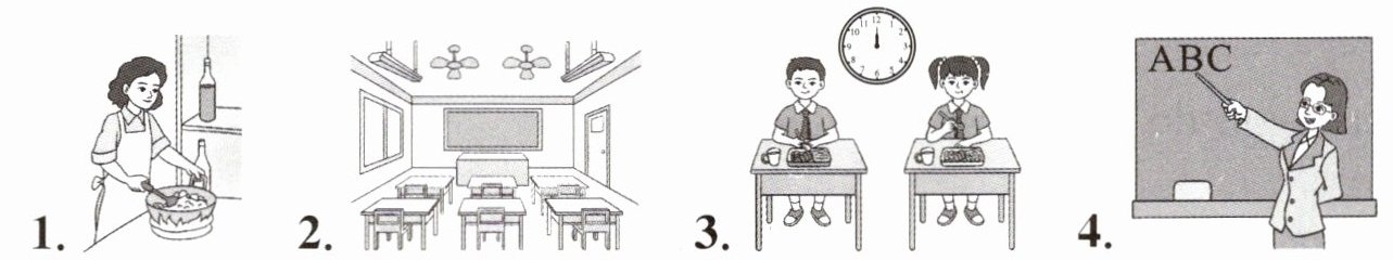 1. kitchen 2. chairs 3. lunch 4. teacher