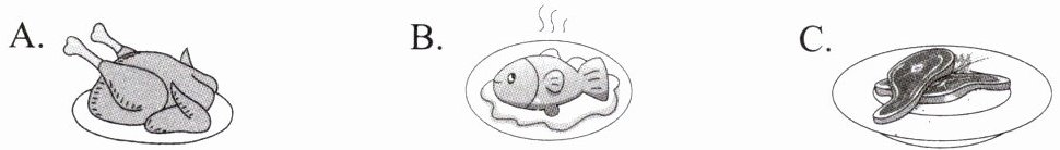 二、读对话或句子,选择相应的图片,将其序号填入题前括号里。