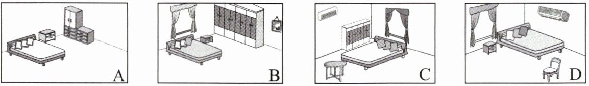 )4. Amy: This is my room. There is a bed, a table, a closet and a new air - conditioner.
