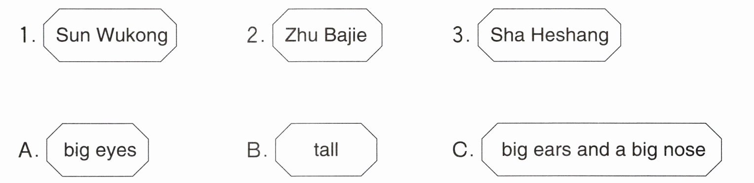 五 读短文,认识一下孙悟空和他的两位朋友,并完成任务。