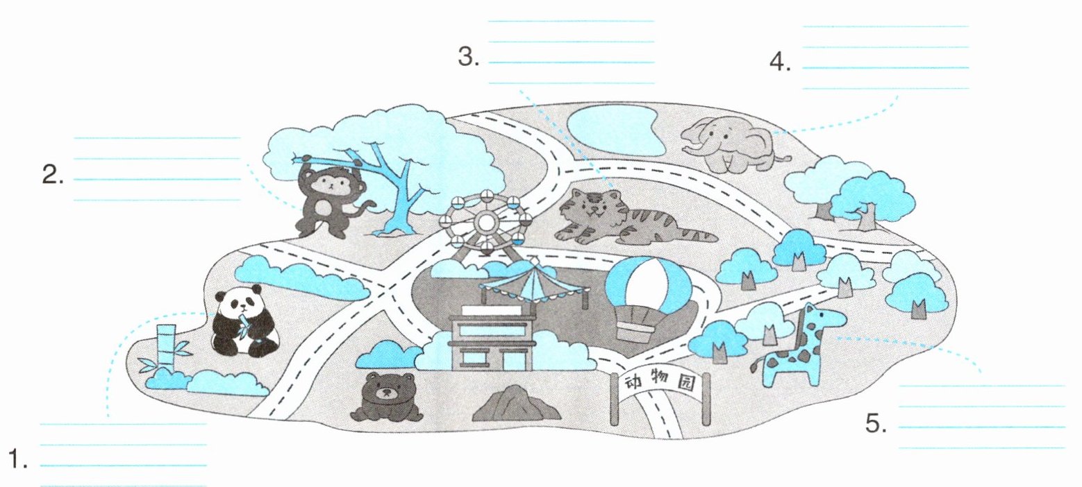 选词填空,完成动物园导览图。