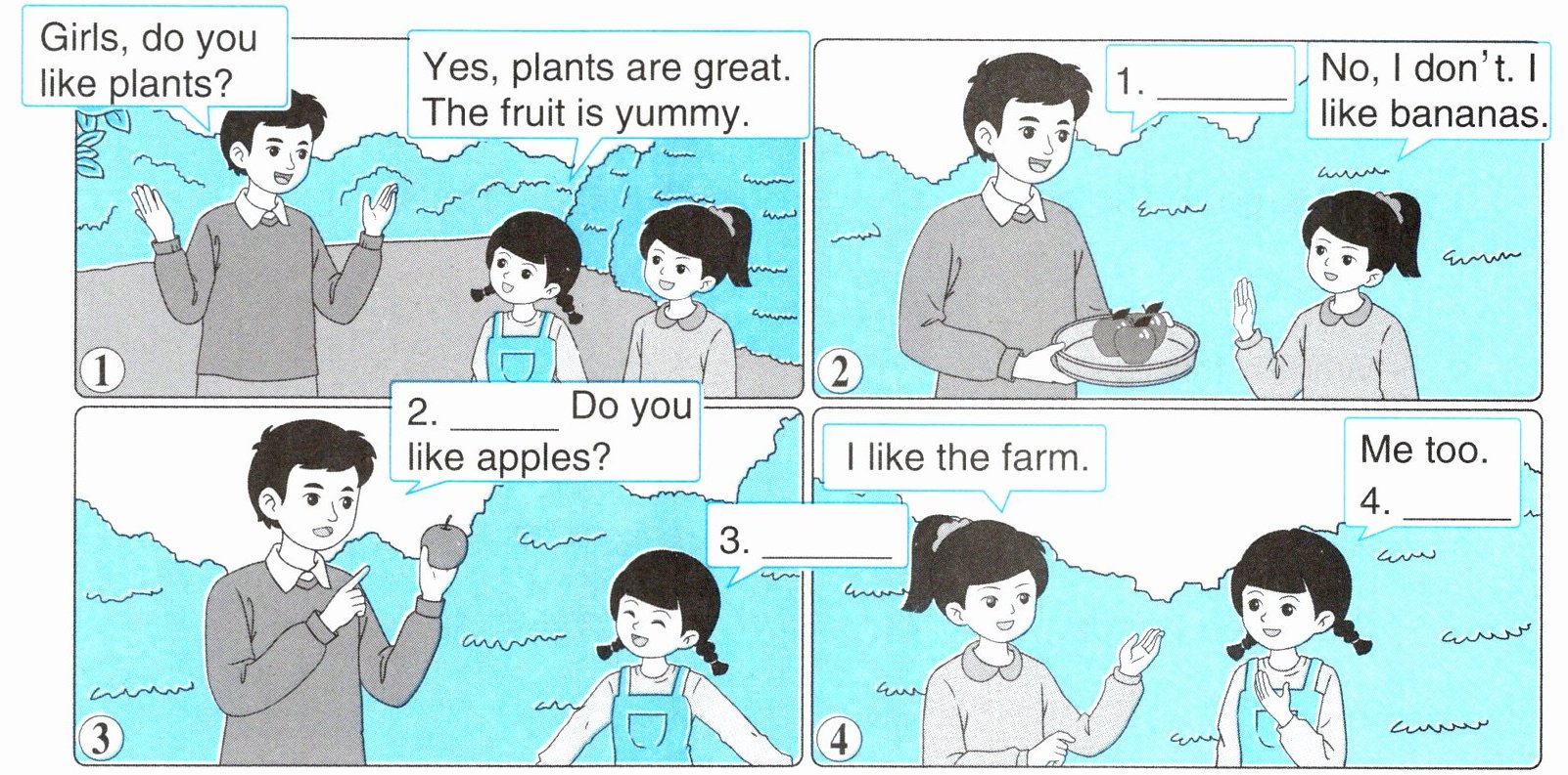 李老师带领孩子们来农场感受植物对人类的贡献,请根据对话内容,补全对话。