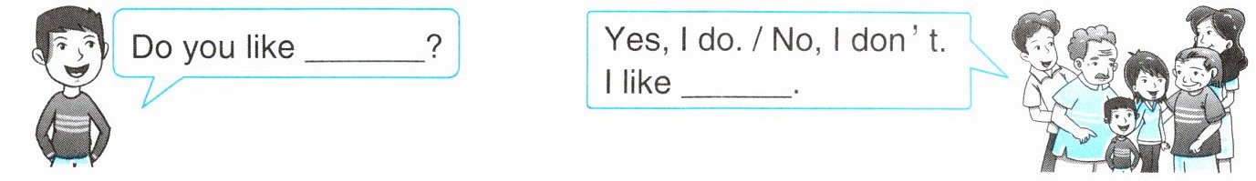 【解析】:1. 根据题目要求,使用句型"Do you like ____?"依次询问father, mother, brother/sister对apples, bananas, grapes, fresh air的喜好。