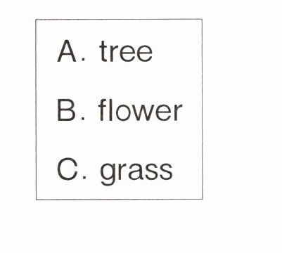 1. 学校的花园里种了很多植物,你认识它们吗?看图选一选,填一填。