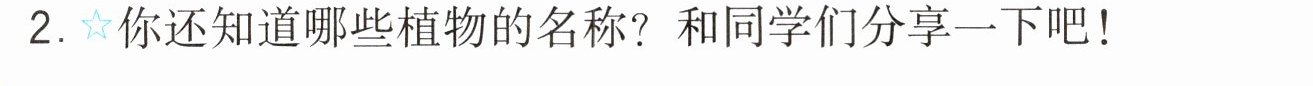 一 看图片,辨认植物名称,并尝试介绍更多植物。
