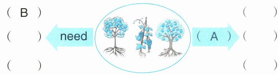 一 关于植物你了解多少呢? 根据教材文章,观察植物示意图,完成思维导图。