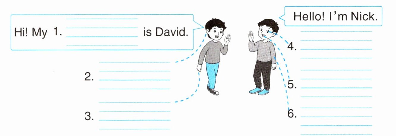 1.name 2.hand 3.arm 4.eye 5.ear 6.mouth
